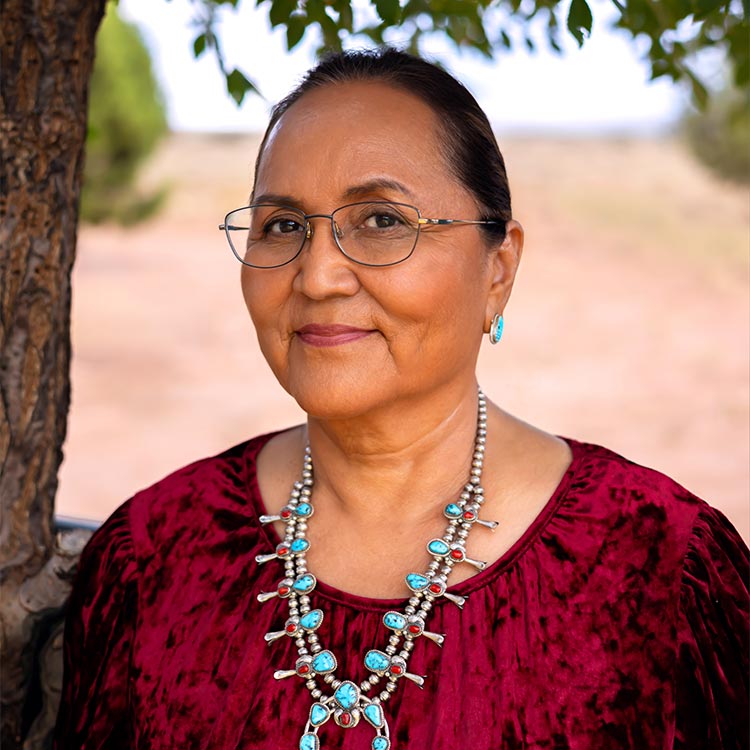 As an artist, Rosie Ann Taylor has been part of the Heard Museum family since 1990, first as an assistant librarian while at Arizona State University and later as a weaving and jewelry artist in the Heard Museum Market, and a weaving demonstrator for the museum. She has participated in juried art exhibitions with SWAIA and Gallup Ceremonial, receiving first-place awards in both weaving and jewelry. Rosie makes traditional and contemporary Navajo rugs and rug dresses, sews regalia using a variety of materials, and creates both traditional and contemporary silversmith designs from sheet metal to final production.
