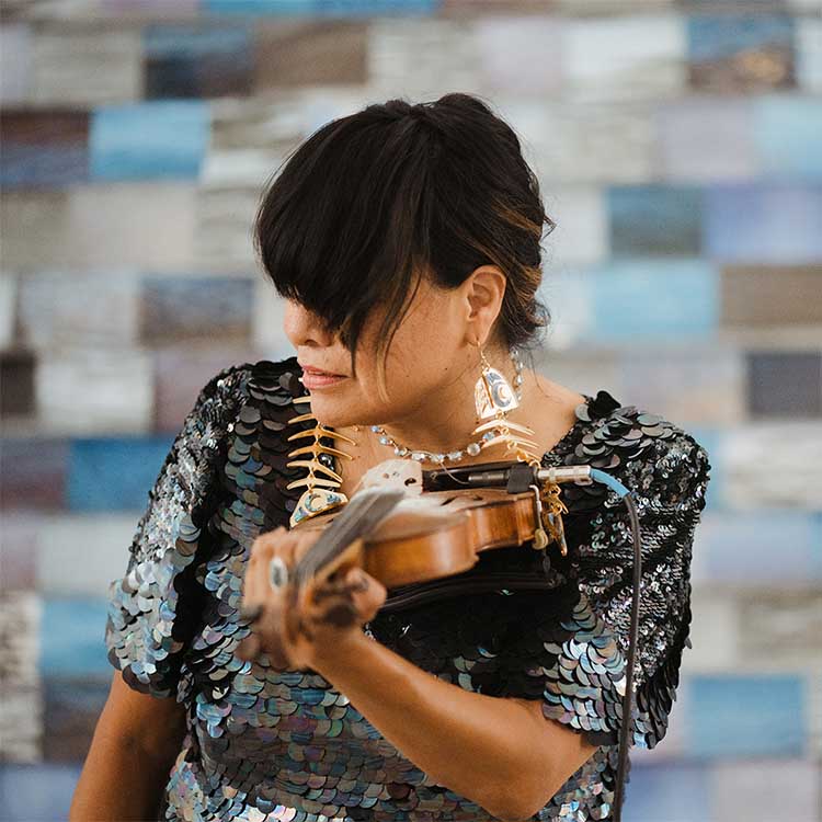 A soloist musician, composer and vibrant collaborator, Laura Ortman creates across multiple platforms, including albums, performances, and artistic soundtracks. Collaborators include Tony Conrad, Jock Soto, Raven Chacon, Nanobah Becker, Jeffrey Gibson, Caroline Monnet, Tanya Lukin Linklater, Kronos Quartet, New Red Order, and Martin Bisi. An inquisitive and exquisite amplified violinist, Ortman is versed in Apache violin, piano, electric guitar, and sings through a megaphone. Ortman has performed at Whitney Museum, Guggenheim, Venice Biennale, Brooklyn Museum, MoMA, National Museum of the American Indian, MASS MoCA, MCA Chicago, Baltimore Museum of Art, New Museum, imagineNATIVE Film Festival, and Centre Pompidou, Paris, among countless established and DIY venues in the US, Canada, Mexico, and Europe. In 2008, She founded the Coast Orchestra, an all-Indigenous orchestral ensemble that performed a live soundtrack to Edward Curtis’s film In the Land of the Head Hunters (1914), the first silent feature film to star an all-Indigenous cast.